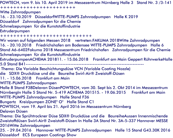 Wir waren 2013 auf folgenden Messen / Veranstaltungen vertreten ITT-Jabsco Pumpen Wir waren 2011 auf folgenden Messen / Veranstalungen vertreten ITT-Jabsco Pumpen Wir waren auf folgen Messen 2010 vertreten. Brau-Beviale Nürnberg 10 bis 12. November Und in der hektik des Alltages wollen wir doch ereignisse der Vergangenheit vergessen.Was wäre die Zukunft ohne Vergangenheit. | ||||||||||||||||||||